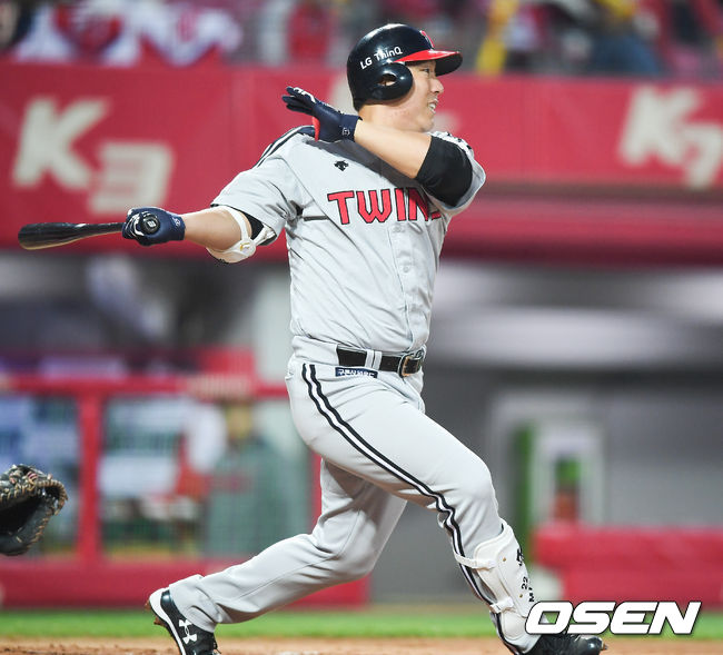 정상적인 상황이고 접촉은 없었다. 박종훈의 초구를 받아쳐 2루 땅볼을 친 김현수는 1루로 뛰던 중 통증을 느껴 제대로 된 주루를 하지 못했다. 코칭스태프와 상의를 거친 김현수는 곧바로 교체됐다.