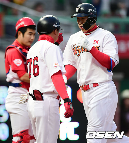 김동엽은 29일 인천SK행복드림구장에서 열린 LG와의 경기에 선발 5번 좌익수로 출전, 홈런 두 방을 포함해 4타수 2안타 4타점 2득점으로 맹활약하며 팀의 10-1 승리를 이끌었다.