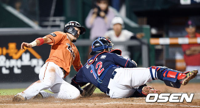 한화가 1회말 첫 공격부터 선취점을 올렸다. 1사 후 강경학의 땅볼 타구 때 롯데 2루수 앤디 번즈의 송구 실책이 나오며 주자가 나갔다. 송광민의 볼넷과 롯데 포수 김사훈의 패스트볼이 나오며 2사 1·3루 찬스를 이어간 한화는 이성열 타석에 롯데 투수 이명우의 폭투에 힘입어 기선 제압했다.