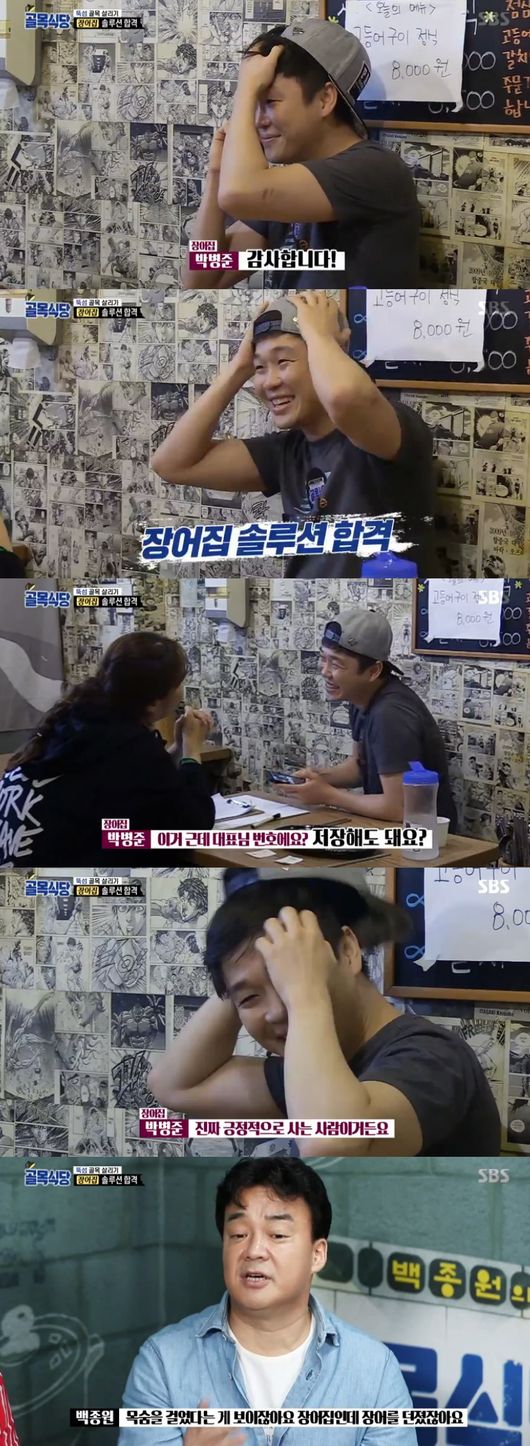 손님이 다녀간 재방문률과 백종원의 평가를 더한 최종선정을 해야하는 상황. 백종원은 합격을 알리기 위해 어디론가 전화를 걸었고, 솔루션 합격의 주인공은 바로 장어집이었다. 그 어떤 장사보다 마음졸였을 미션이었기에, 장어집사장은 "정말 감사하다"며 환호했다.
