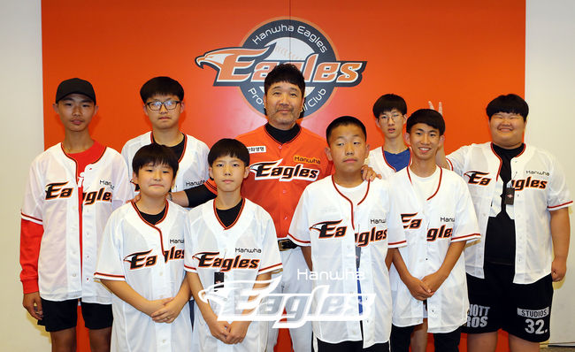 지난 29일 대전 롯데전을 앞두고 한용덕 감독은 8명의 어린이들과 만남의 시간을 가졌다. 평화의 마을 아동복지센터 아이들을 야구장에 초청했고, 유니폼·사인볼 등 기념품을 전달하며 이야기를 나눴다. 어린이들도 한용덕 감독에게 감사인사를 하며 즐거운 한 때를 보냈다.
