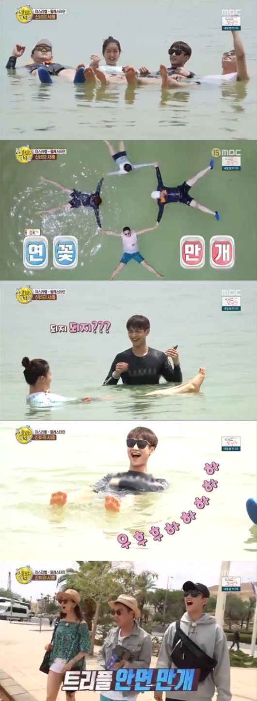 제작진은 결국 길을 돌아가는 모험을 했고, 2시간 걸릴 길을 5시간 만에 도착했다. '선녀들'은 모두 수영을 하며 즐거워했다. 민호는 보지 못할 뻔했던 사해를 만나 잇몸 만개한 모습으로 사해에 뛰어들었다. 수영을 못하는 김구라와 설민석도 몸이 뜨는 걸 보며 신기해했다. '선녀들'은 연꽃 모양 대열을 하며 즐거운 한 때를 보냈다.
