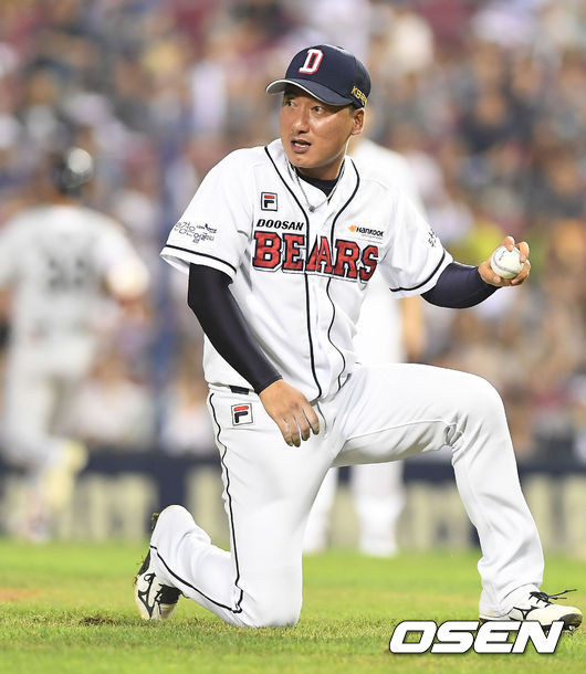 2003년 두산에 입단한 정재훈은 15시즌 동안 통산 555경기 35승 44패 139세이브 84홀드를 기록했다. 2015시즌 장원준의 FA 보상선수로 잠시 롯데 유니폼을 입었지만, 이듬해 2차 드래프트를 통해서 다시 두산으로 복귀했고 그해 46경기에서 1승 5패 2세이브 23홀드 평균자책점 3.27로 두산의 한국시리즈 직행에 앞장섰다.