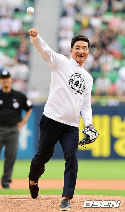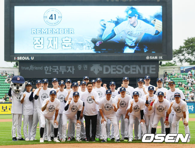 2016년 8월 3일 잠실 LG전에서 팔뚝에 공을 맞아 1군 마운드에 복귀하지 못했던 정재훈은 이날 경기 시작과 함께 선수 정재훈의 마지막을 알린 공을 포수를 향해 던졌다. 선수로서 마지막 공을 받은 박세혁과 타석에 섰던 정성훈과 포옹을 하며 정재훈 코치의 '선수 이별 행사'는 막을 내렸다. bellstop@osen.co.kr