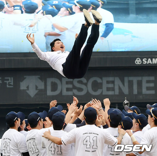 두산 베어스는 30일 서울 잠실구장에서 현재 2군 투수 코치로 있는 정재훈 코치의 선수 은퇴식을 진행했다.