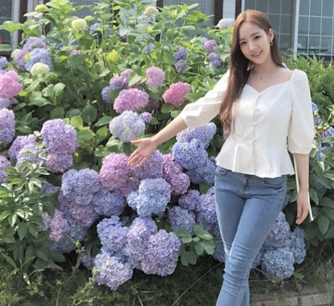 공개된 사진 속에서 박민영은 활짝 핀 수국 앞에서 포즈를 취하고 있으며, 꽃보다 아름다운 그녀의 사랑스러운 모습이 팬들의 이목을 사로 잡았다.