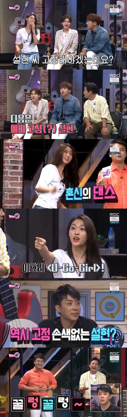 지민, 은지원, 부승관은 전현무 팀이 됐고, 설현, 장도연, 유세윤은 이수근 팀이 됐다. 설현은 초반부터 활약을 펼쳤다. 몸으로 곡을 설명하는 '바디싱어' 코너에서는 '칵테일사랑', '일렉트릭 쇼크', '유고걸', '일탈' 등을 알아맞혀 유세윤으로부터 "고정해야 겠는데?"라는 극찬을 들었다.