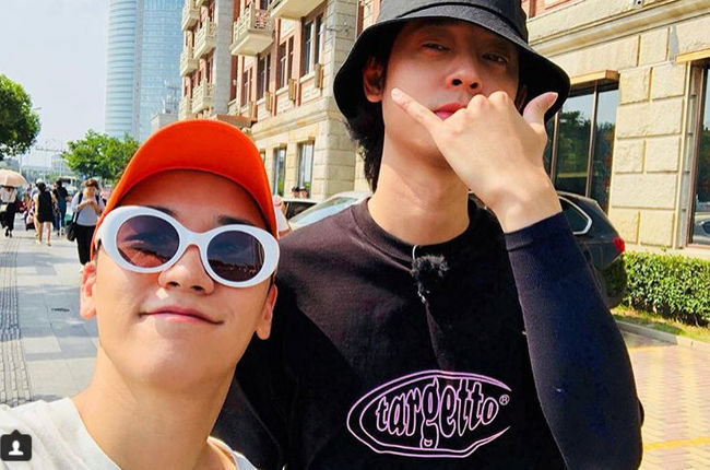 공개된 사진 속에서 승리는 멋지게 포즈 짓는 정준영 옆에서 흐뭇한 미소를 짓고 있다.