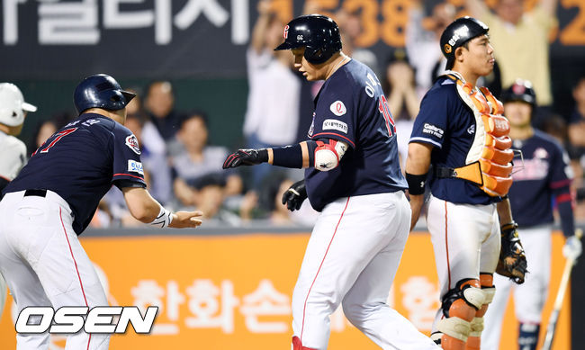한화는 30일 대전 한화생명이글스파크에서 열린 2018 신한은행 MY CAR KBO리그 한화와 원정경기에 6-5 끝내기 역전승을 거뒀다. 9회말 2사 1,2루 찬스에서 지성준이 손승락에게 끝내기 스리런 홈런을 터뜨렸다.