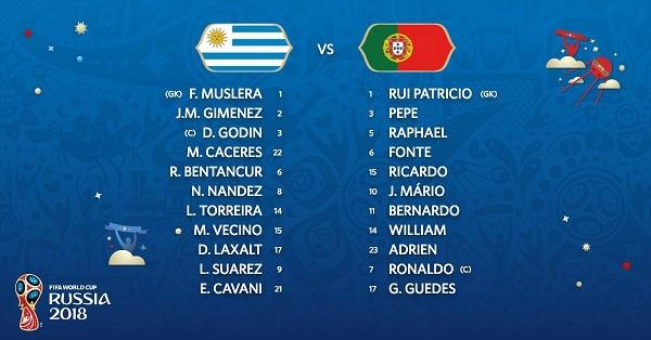 우루과이와 포르투갈의 선발 라인업이 공개됐다.