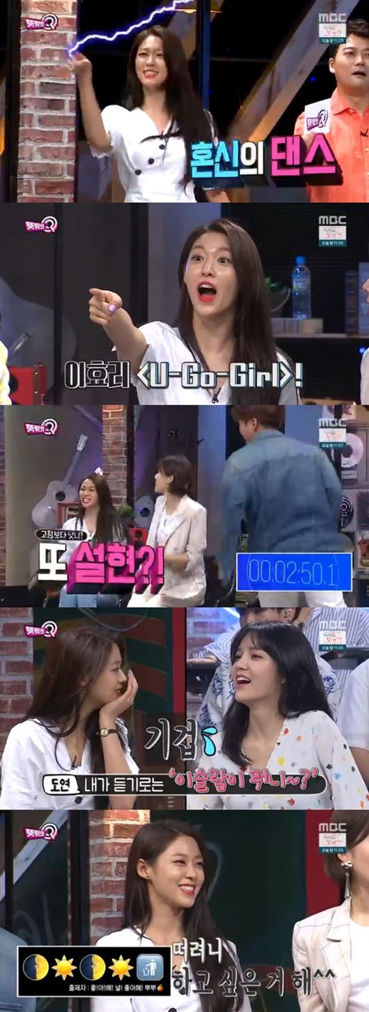 지난 달 30일 오후 방송된 MBC 예능 프로그램 '뜻밖의Q'에서는 AOA 설현, 지민, 장도연이 출연했다.