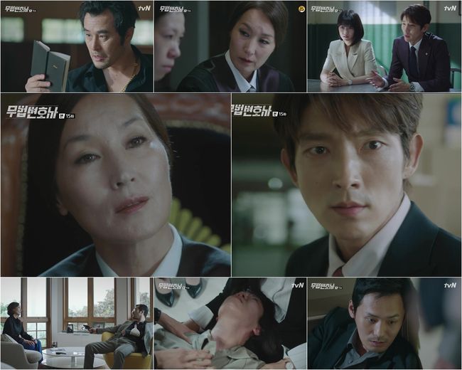 지난달 30일 방송된 tvN ‘무법변호사’(김진민 연출, 윤현호 극본) 15회는 봉상필(이준기 분)과 차문숙(이혜영 분)이 자신들에게 남은 단 하나의 목표, 대법원장 임명과 법의 심판을 위해 총력전을 펼치며 시청자들의 흥미를 최대치로 끌어올렸다. 또한 안오주(최민수 분)가 차문숙의 계략으로 김비서(정영훈 분)의 칼에 찔리고, 석관동(최대훈 분)이 그를 대신해 죽음으로써 시청자들을 충격에 빠트렸다.