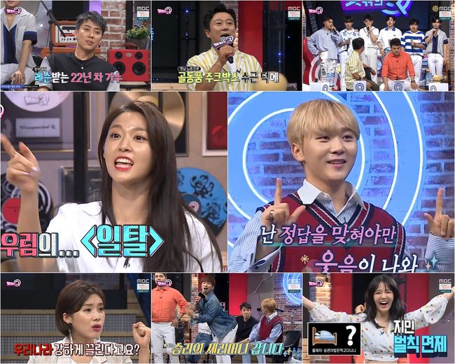 지난달 30일 방송된 MBC ‘뜻밖의 Q’(기획 강영선, 연출 최행호 채현석) 9회에서는 ‘한여름 밤의 꿀 같은 노래’라는 주제로 이수근-유세윤-설현-장도연과 전현무-은지원-승관(세븐틴)-지민(AOA)이 각각 팀을 이뤄 반전의 퀴즈 배틀을 벌였다.