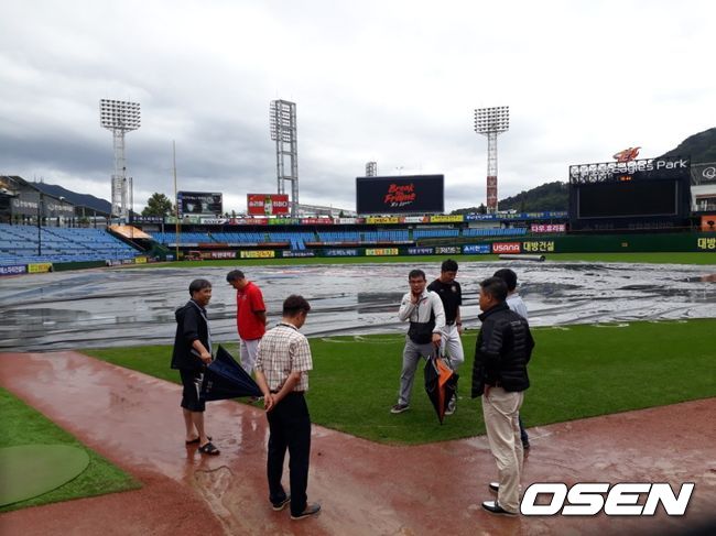 비 내리는 그라운드를 뒤로 하고 홈팀 한화 선수들은 외야 실내연습장에서 가볍게 훈련을 소화했다. 원정팀 롯데 선수들은 제대로 된 훈련도 하지 못한 채 스트레칭으로 몸을 푸는 수준에 그쳤다. 그라운드 곳곳에 빗물로 인해 웅덩이가 생겼다. 정상 진행이 어려워 보였다.