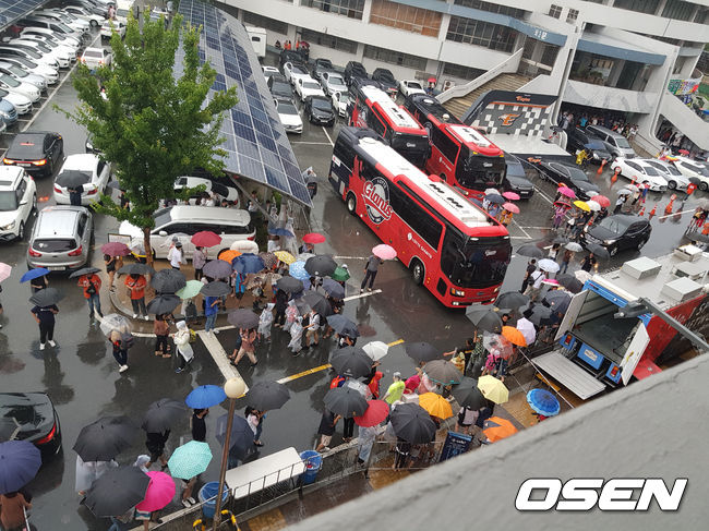 귀한 발걸음으로 경기장을 찾아온 팬들도 뒤늦은 우천 취소로 울상은 지었다. 경기 시작에 맞춰 음식을 준비해온 팬들은 아쉬운 마음에 쉽게 발걸음을 옮기지 못했다. 원정팀 롯데 선수단은 팬들과 이동 경로가 겹치며 취소 결정 후에도 구단 버스가 빠져나가지 못했다.