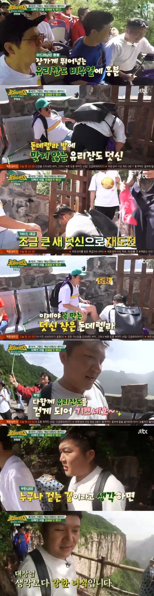 하지만 너무 높은 절경에 모두 공포에 떨었다. 조세호 역시 "뭐냐 이거"라며 아찔해했다. 그래서 일까, 조세호는 금방 힘든 모습을 보였다. 김용만은 "내가 5시 봤다, 지금 3시인데 벌써 체력 방전됐다"며 웃었고, 세호는 "조금 그런 것 같다"며 인정했다.
