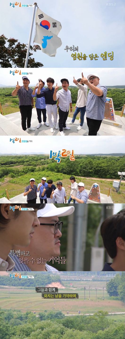 1일 오후 방송된 KBS2 ‘1박2일’에서는 예능 최초로 경기도 파주시 군사분계선상에 있는 판문점을 찾은 모습이 담겨 눈길을 모았다. 이날 멤버들은 언젠가 북측에서 “2일~”이라고 화답할 그 날을 기다리자는 제작진의 제안에 따라 클로징에서 “1박”이라는 구호만 외쳐 마음을 뭉클하게 만들었다.