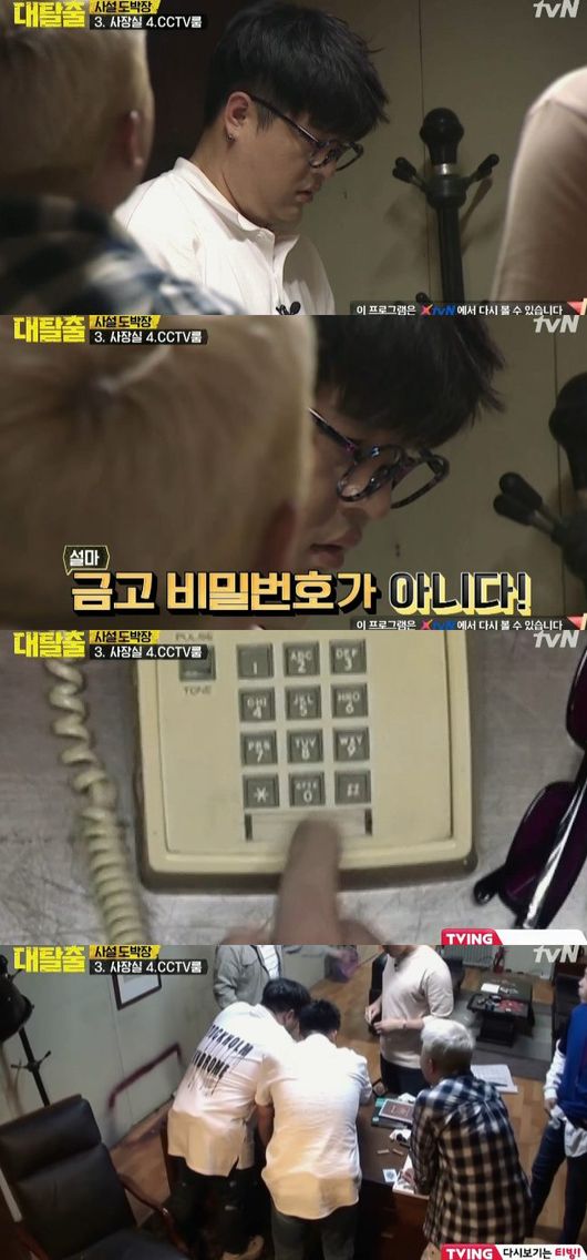 지난 1일 첫 방송된 tvN 새 예능 '대탈출' 1회에서는 인천에 위치한 한 공장에서 탈출을 시도하는 강호동, 김종민, 슈퍼주니어 신동, 유병재, 김동현, 블락비 피오의 모습이 전파를 탔다.
