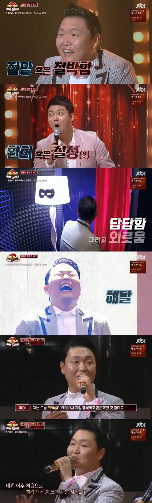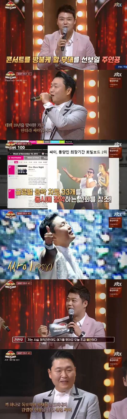 1일 방송된 JTBC 예능 '히든싱어 시즌5 '에서는 싸이가 출연했다.