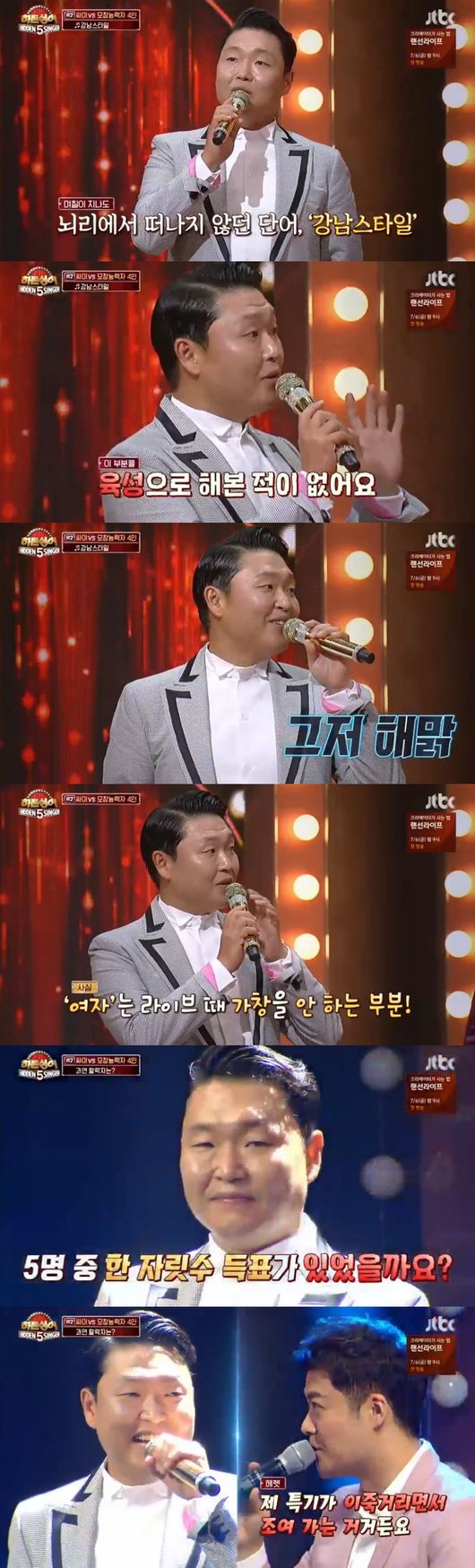 1일 방송된 JTBC 예능 '히든싱어 시즌5 '에서는 싸이가 출연했다.