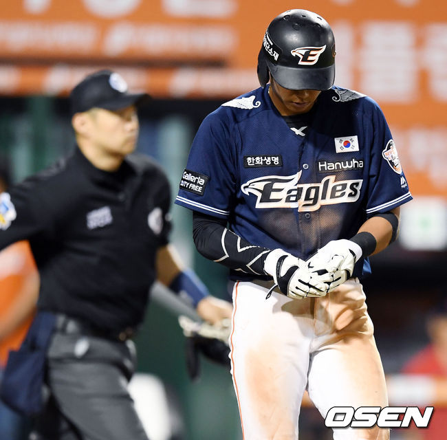 한화 외야수 장진혁(25)은 지난달 30일 대전 롯데전에서 9회말 1사 2루 찬스에 타석 등장했다. 3-5로 뒤진 시점, 롯데 투수 손승락의 2구째 142km 커터가 장진혁의 왼쪽 무릎 위쪽을 맞혔다. 충격이 있을 법도 했지만, 장진혁은 아픈 내색하지 않은 채 1루로 여유 있게 뛰어갔다.