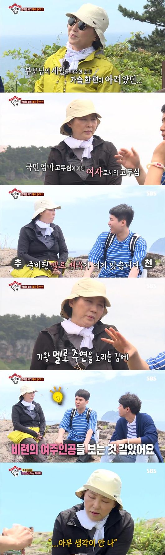 지난 1일 오후 방송된 SBS 예능프로그램 '집사부일체'에서는 고두심이 사부로 출연했다. 제주도의 아름다운 자연과 함께 고두심과 '집사부일체' 팀의 솔직하고 재치 있는 1박2일 합숙이 진행됐다.