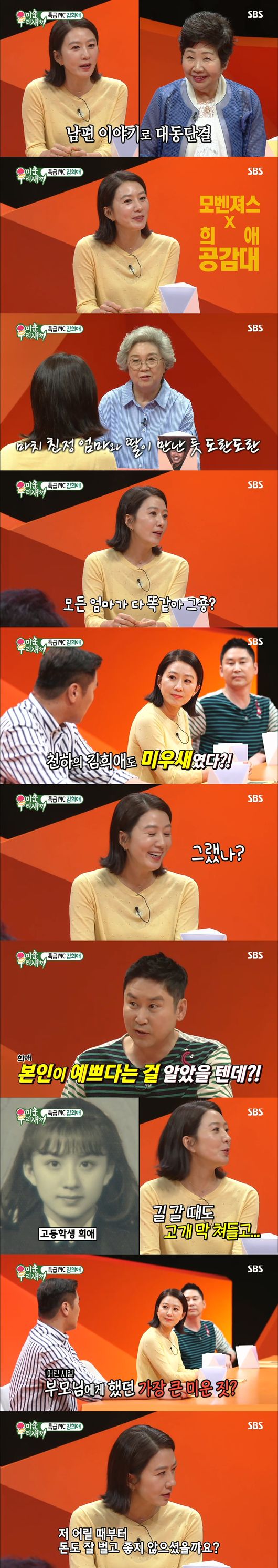 이날 방송에서는 김희애가 지난주에 이어 스페셜 MC로 ‘모벤져스’와 찰떡궁합을 이어갔다. 남편과 아들 이야기로 대동단결한 이들은 마치 친정엄마와 딸이 만난 듯 도란도란 대화를 이어가며 시청자들의 마음을 훈훈하게 했다.