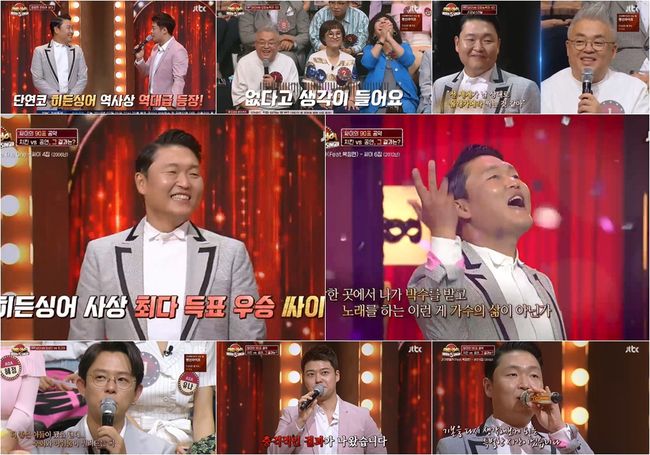 지난 1일 방송된 JTBC ‘히든싱어 시즌5’ 3회 싸이 편에서 원조 가수 싸이가 전 국민을 ‘챔피언’으로 만든 기적의 무대로 존재감을 입증했다.