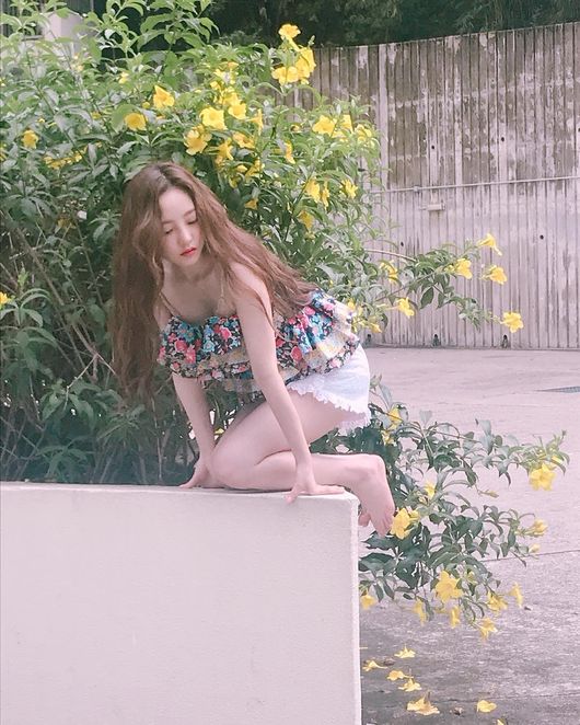 공개된 사진 속에는 어딘가에 올라 앉아 포즈를 취하려고 하는 구하라의 모습이 담겨 있다. 웨이브가 들어간 긴 헤어스타일에 새하얀 피부까지, 마치 요정과 같은 그의 미모가 보는 이들의 시선을 사로잡는다.