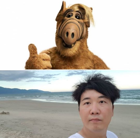 공개된 사진 속에는 바닷가를 배경으로 부스스한 머리를 자랑하고 있는 도경완 아나운서의 모습이 담겨 있다. 특히 그의 근황 사진 위에 이와 닮은 듯 보이는 미국 NBC 드라마 '외계인 알프'의 주인공 알프의 모습이 담겨 있어 보는 이들의 폭소를 유발한다.