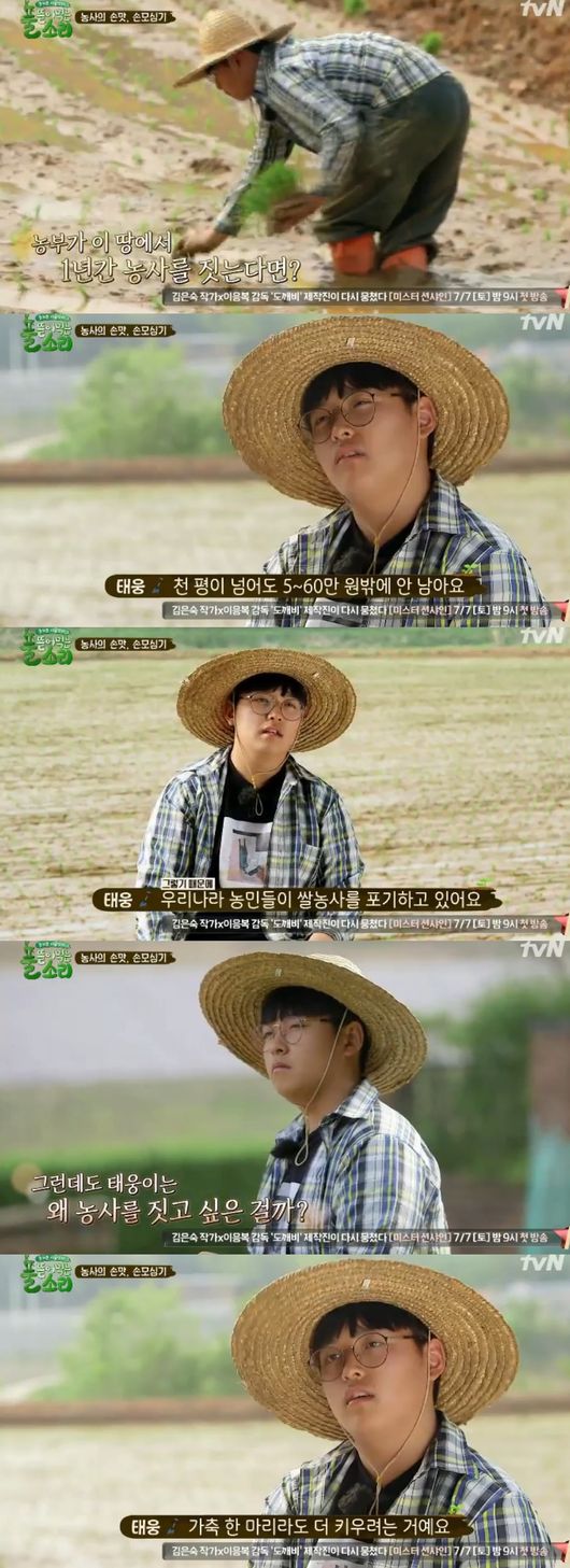 태웅은 첫 농사일부터 모내기 철이라 말했다. 농사일 할때 드러나는 태웅이의 매력에 모두 빠져들었다.