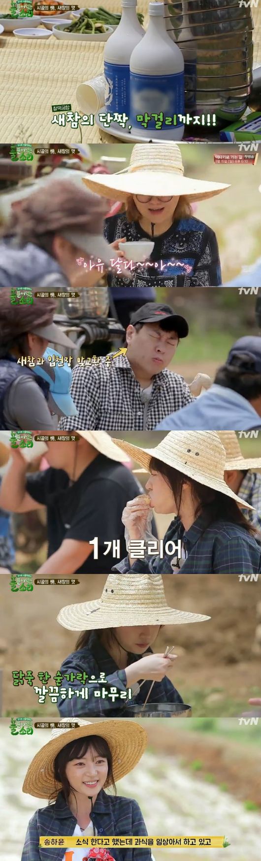 2일 방송된 tvN 예능 '풀 뜯어먹는소리'에서는 첫 모내기를 완벽하게 완수한 멤버들이 그려졌다.