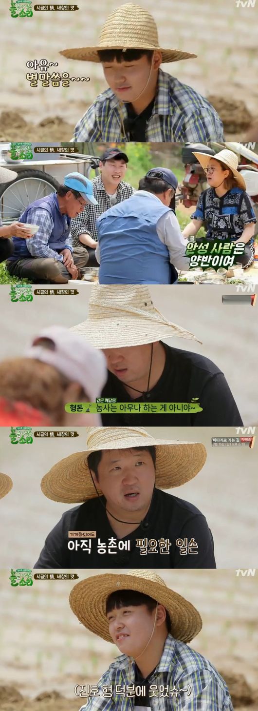 뜨거운 햇살아래 벌써부터 다음 농사일을 걱정했다. 마음만은 이제 농사꾼이었다. 태웅은 "저녁때 심는 것이 좋다"며 깨알지식을 전했다. 바라만봐도 좋은 풍경에 모두 넋을 잃었다. 뻐꾸기도 울었고, 바람이 선선하게 불어왔다. 모두 멍때리기 시작, 형돈은 "아무생각이 없어 좋다"라면서 "언제든 쉴수 있어 좋다"고 말했다.
