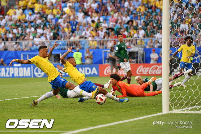 브라질은 후반 43분 승부에 쐐기를 박았다. 네이마르가 단독 질주해 오른발 토킥으로 슈팅한 것을 오초아가 손끝으로 막아냈지만 교체투입된 로베르투 피르미누가 밀어넣으며 멕시코의 추격 의지를 따돌렸다./dolyng@osen.co.kr