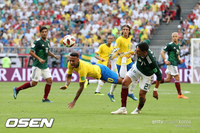 중반 이후 완벽히 주도권을 잡은 브라질은 전반 막판 네이마르의 프리킥이 골문을 비껴가며 아쉬움을 삼켰다. 브라질은 결국 멕시코 골망을 흔들지 못한 채 0-0으로 전반을 마쳤다.