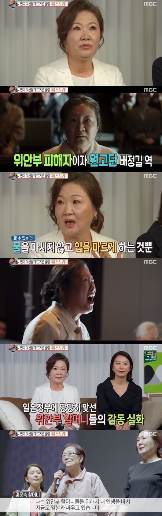 그는 "저는 사실 위안부 피해 할머니의 역할을 제 나이에 맡게 될거라고 생각을 못했다. 너무 힘들었다. 재판장에 앉아 있는데 몸이 너무 아파서 몸살이 났다. 힘들게 촬영을 했다"고 털어놨다.