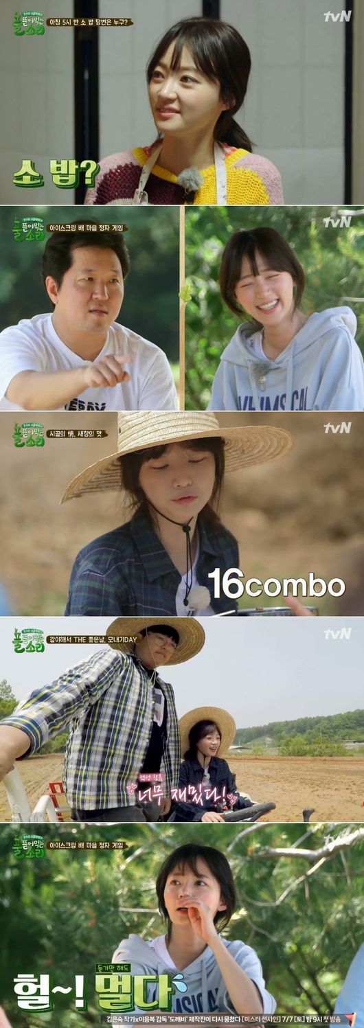 지난 2일 방송된 tvN 예능프로그램 '풀 뜯어먹는 소리' 2화에서는 농사일과 먹방 모두 수준급인 송하윤의 모습이 눈길을 끌었다.