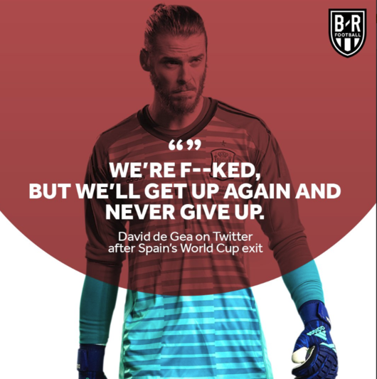 스페인의 수문장 다비드 데 헤아는 3일(이하 한국시간) 자신의 SNS를 통해 러시아 월드컵에 대한 소회를 밝혔다. 그는 "이번 월드컵서 우리는 완전히 X같았다"고 인정하면서 "그러나 우리는 포기하지 않고 다시 일어설 것이다"고 다짐했다.