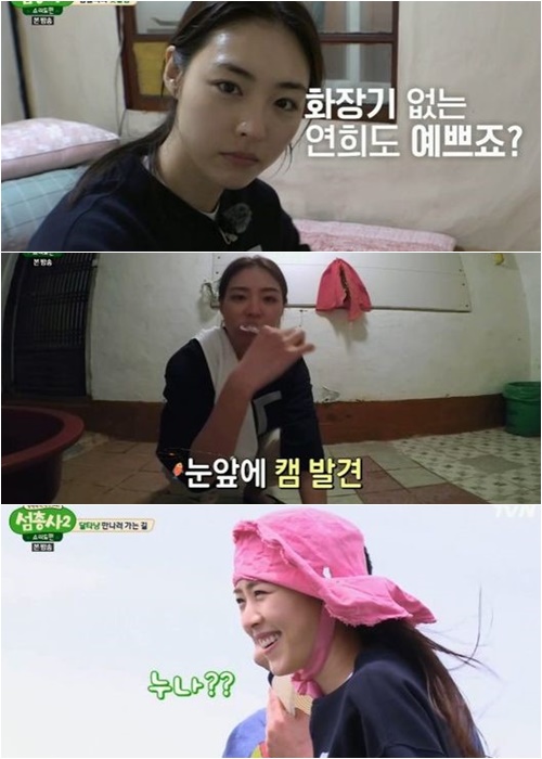 이연희는 이날 섬 생활에 본격적으로 적응했다. 어르신들과 맛있게 저녁을 먹은 이연희는 잠들기 전 세수를 하며 완벽한 민낯을 공개했다. "민망하다"며 로션을 터프하게 바른 그는 화장기가 전혀 없는 민낯임에도 뚜렷한 이목구비와 우윳빛 피부 등 아름다운 미모로 감탄을 자아냈다.