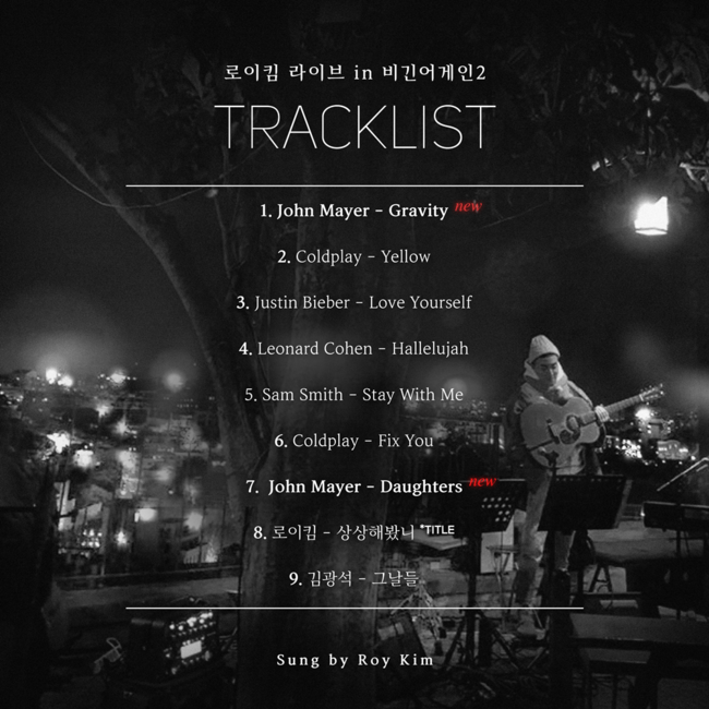 이로써 '로이킴 라이브 in 비긴어게인2'에는 지난달 21일 공개된 '로이킴 라이브 in 비긴어게인2' 앨범에 존 메이어의 'Gravity', 'Daughters' 2곡을 추가해 총 9트랙이 수록된다.