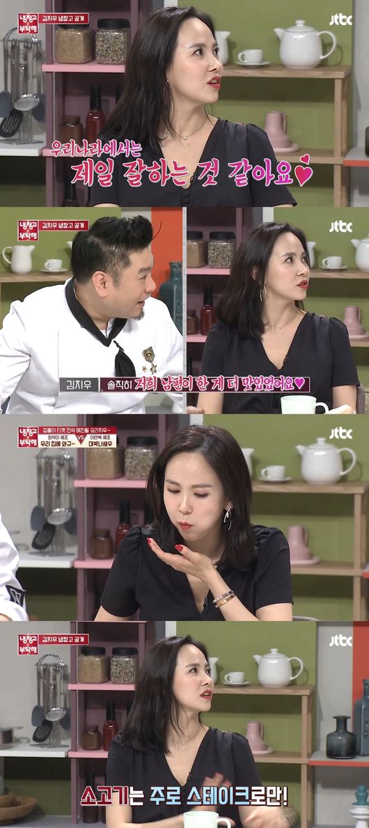 '냉부해'에 출연한 배우 김지우가 남편 레이먼킴에 대한 애정을 수 없이 표현했다. 김지우