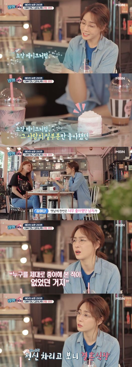 아직 미혼인 제아는 결혼한 김이나에게 궁금한 점을 물어봤다. 남자를 본 기준이 뭐냐고 묻자 김이나는 “기준 없다. 그 사람 전체를 보기보다는 조각케이크처럼 그 사람의 일부분을 좋아한 것”이라고 했다. 제아가 결혼 생각이 없었다고 하자 김이나는 “사람마다 다른 것 같다. 혼자서도 안정적인 사람이 있지만 또 안 그런 사람이 있다. 나는 혼자서는 불안정했다”고 말했다.