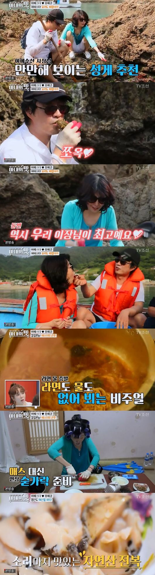 3일 방송된 TV조선 '아내의 맛'에서 홍혜걸과 여에스더는 영산도에서 섬 생활을 즐겼다. '편의점 부부'로서 인스턴트 음식에 길들여진 두 사람은 영산도 자연의 맛에 흠뻑 취했다.