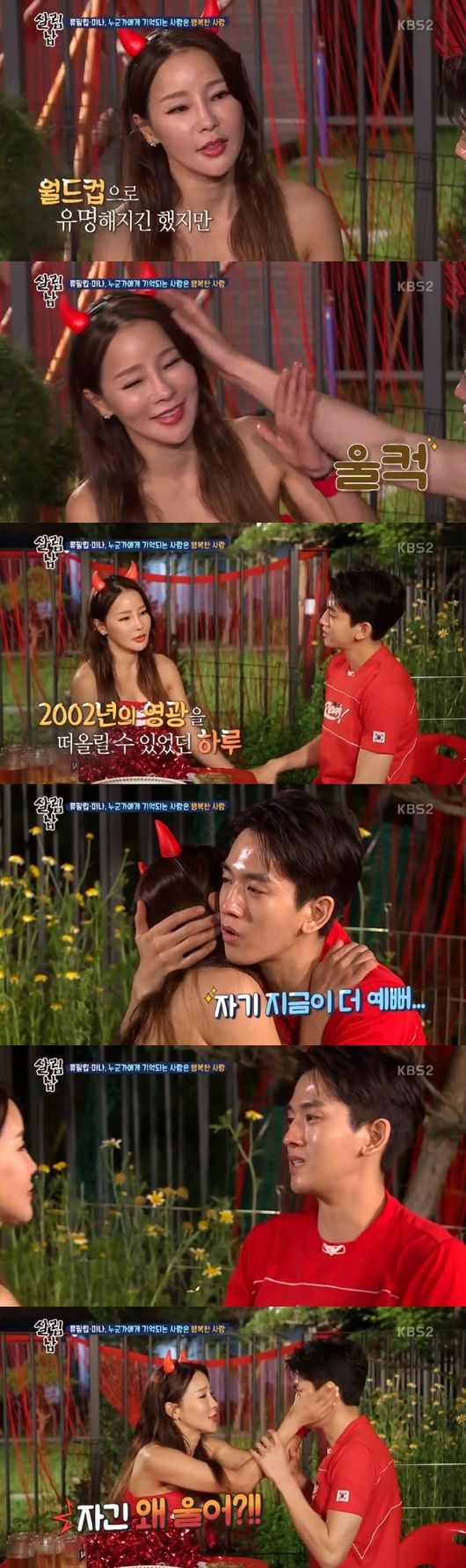 미나는 "내가 월드컵으로 유명해졌지만, 사람들이 '날 다 잊었구나' 생각했다. 근데 자기 덕분에 어릴 때 기억도 나고, 추억도 생각나면서, 다시 2002년이 생각났다. 추억을 다시 생각나게 해줘서 고맙다"며 눈물을 흘렸다.