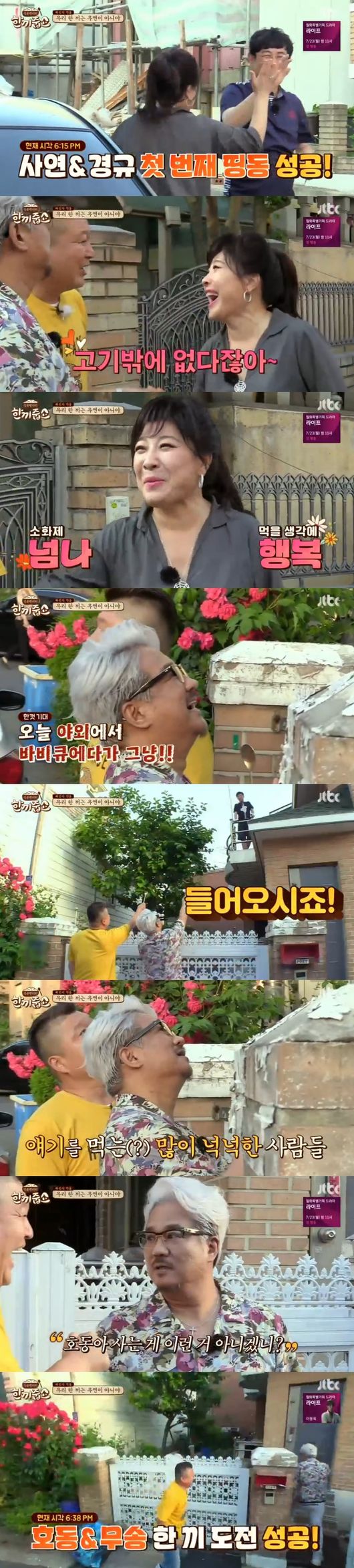 사연이 첫 벨을 도전했다. 3대가 함께 사는 집이었다. 마침 식사 준비 중이었고, 메뉴가 고기란 말에 노사연은 흥분하면서 "제대로 골랐다"며 환호했다. 한 번에 될 수도 있는 상황. 예상처럼 시작 15분만에 첫 집에서 한 끼를 바로 성공했다. 노사연은 "고기 밖에 없단다"라면서 "고기만 보면 마음에 안정감이 생긴다"고 했다.
