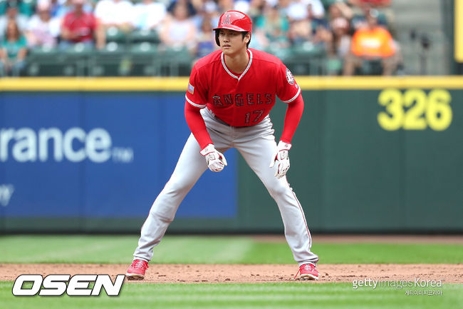 3회 주자 2루 상황에서 타석에 들어선 오타니는 마이크 리크의 초구를 공략해 우전 안타를 뽑아냈다. 이후 콜 칼훈의 적시타로 홈까지 밟으면서 득점까지 올리는데 성공했다./ bellstop@osen.co.kr