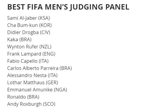'최고의 골키퍼'를 가리는 심사진엔 피터 슈마이켈(덴마크), 호르헤 캄포스(멕시코), 호세 레네 이기타(콜롬비아), 디에고 포를란(우루과이) 등이 선정됐다.