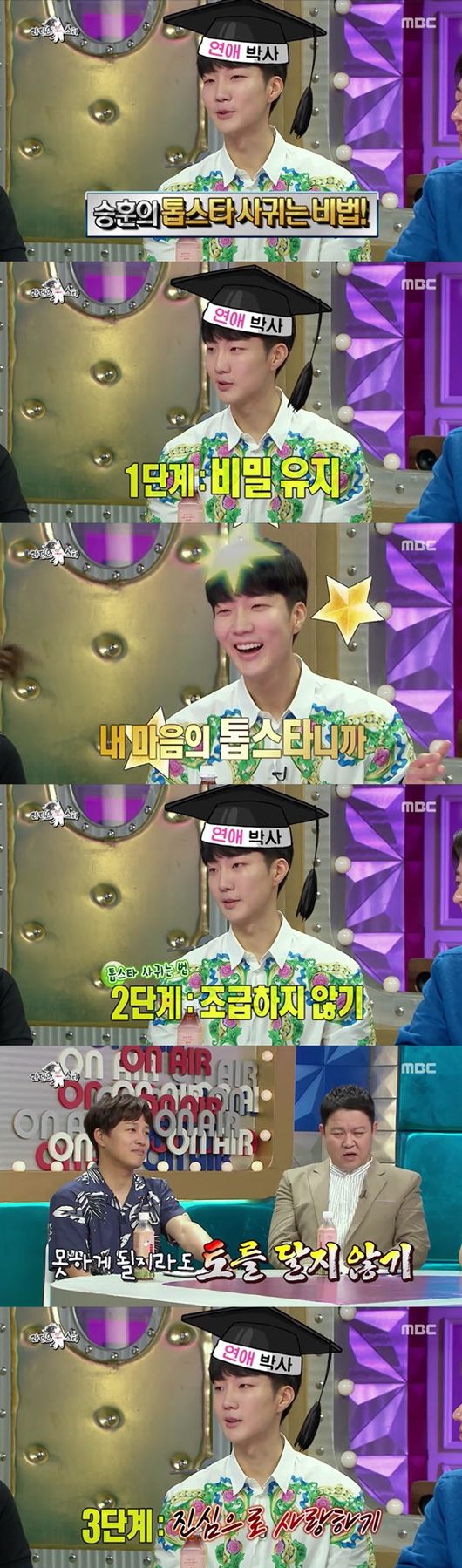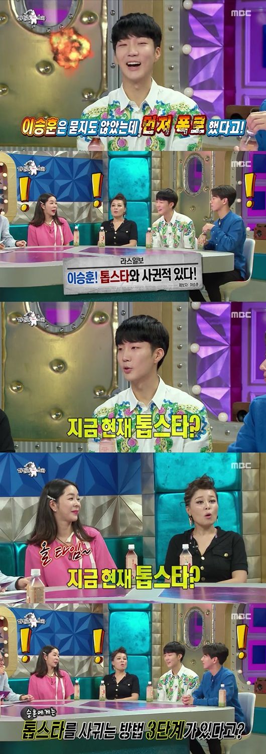 백미는 이승훈의 셀프 폭로 타임이었다. MC들은 “아이돌 최초로 묻지도 않았는데 과거 톱스타와 교제했다고 스스로 밝힌 인물”이라고 말했고, 이승훈은 “올타임 톱스타와 만난 적이 있다”고 고백했다. 그는 톱스타와 열애하는 방법 3단계로 “입이 무거워야 하고, 조급해하거나 집착은 하지 말아야 한다. 그리고 진심으로 사랑해야 한다”고 말해 박수를 받게 했다.