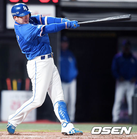 이원석(삼성)이 2-2 균형을 맞추는 동점 솔로 아치를 터뜨렸다.