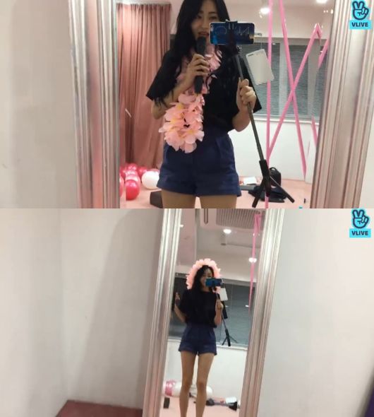 경리는 5일 오후 네이버 V라이브를 통해 ‘경리 어젯밤 블루문’ 솔로 데뷔 라이브 방송을 시작했다.